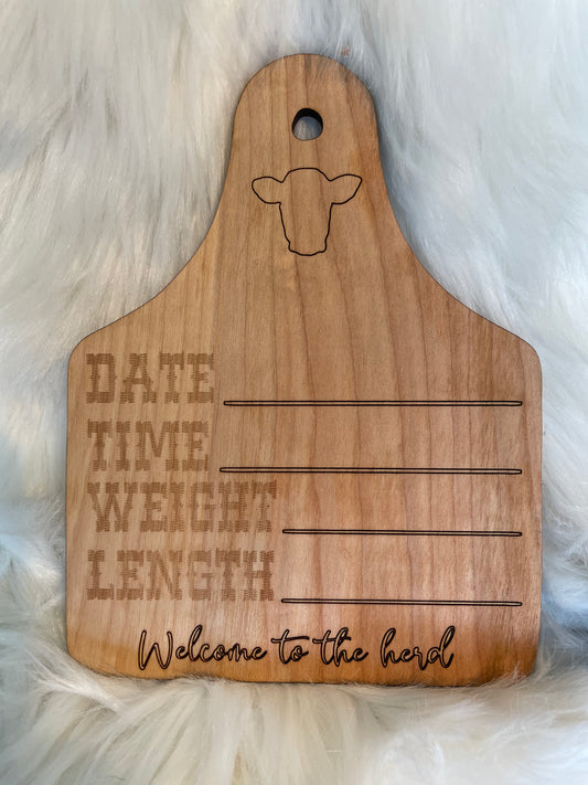 Baby Cow Tag Birth Announcement