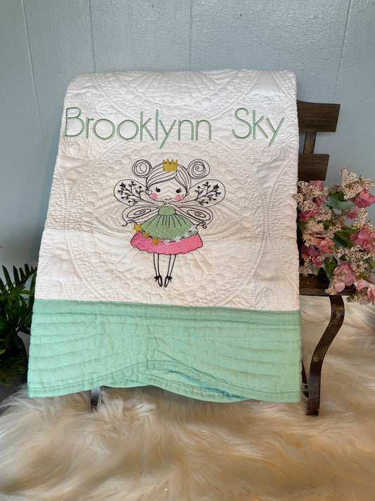 Baby Quilt embroidered with Fairy and optional Name